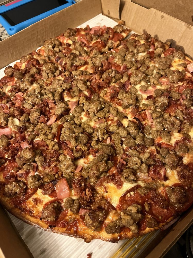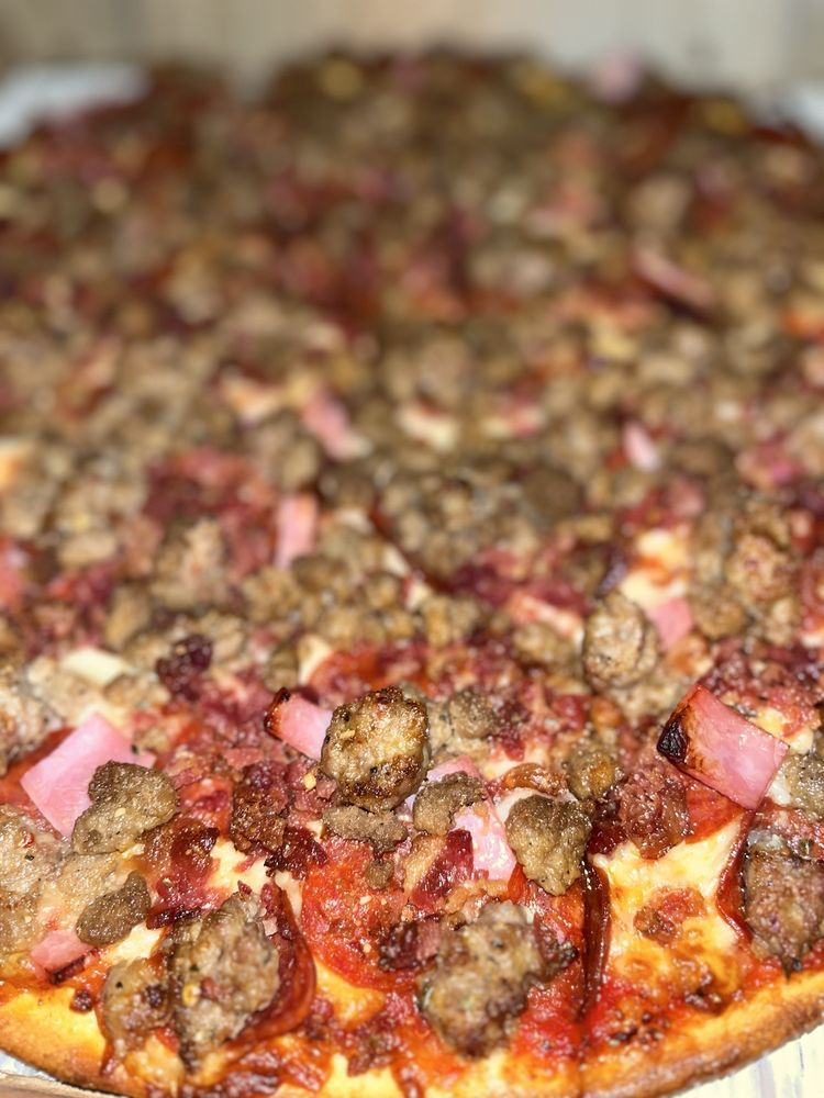 Cheese, pepperoni, ham, beef, bacon, sausage.